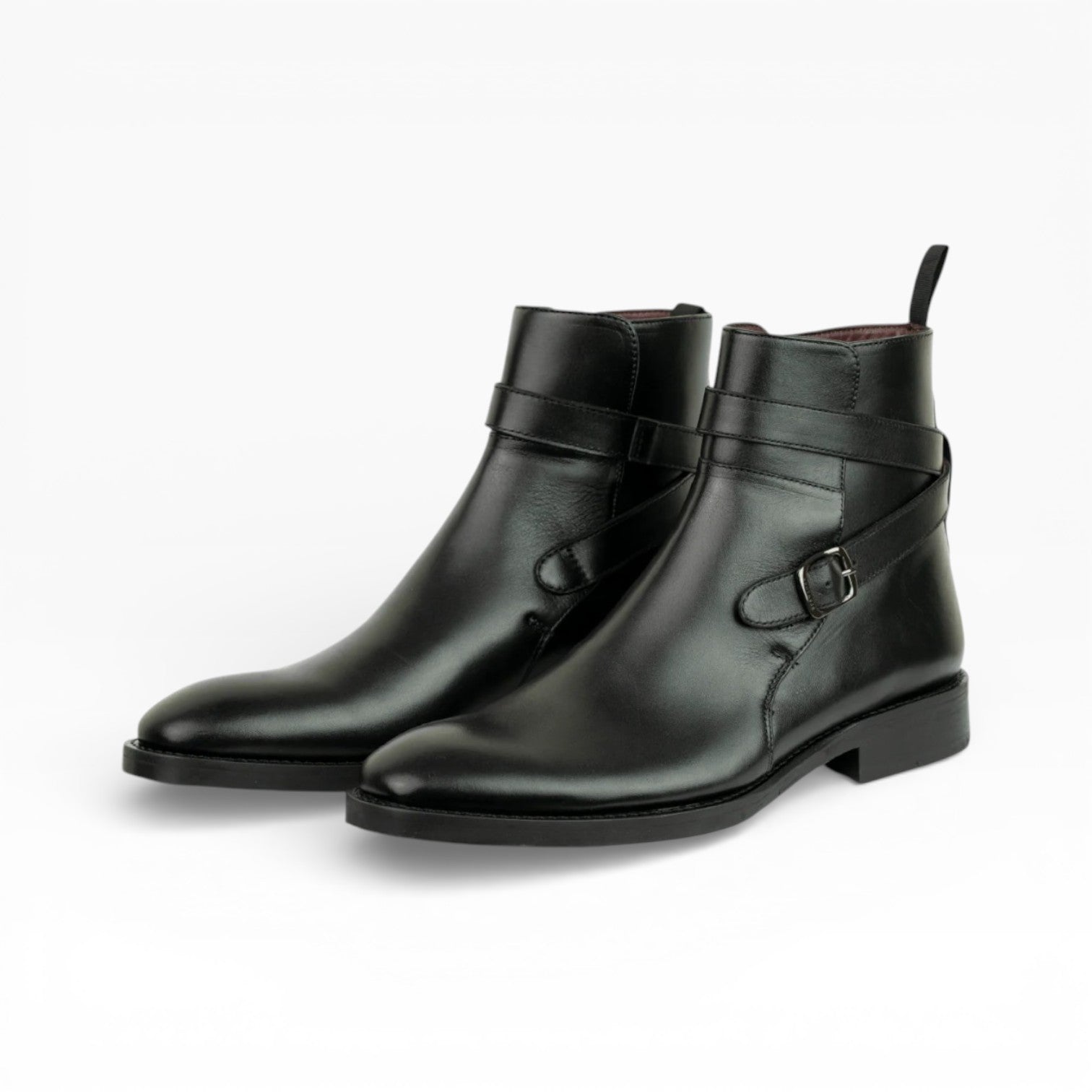 Bottine Haut de gamme à boucle en cuir premium-Noir
